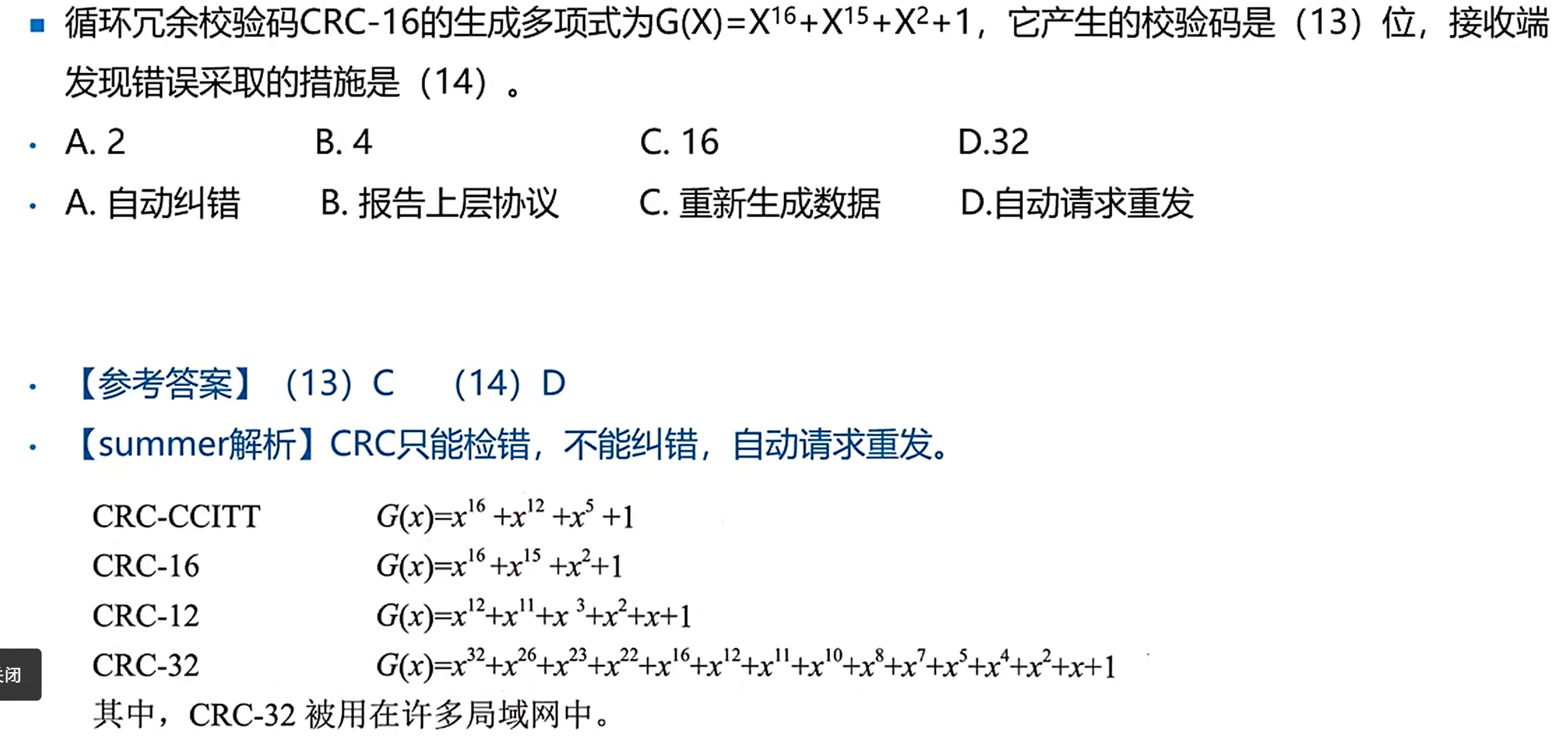 末尾加入CRC循环冗余校验码能检错不能纠错。